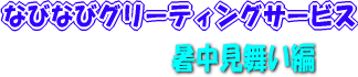 このサービスを使えば、無料で暑中見舞いグリーティングカードが送れます! FLASHを使っているので、マウスで色々な動きが楽しめます。 操作も超簡単なので、初心者の方でも安心です! あなたの気持ちをカードにして、贈りましょう(*^ ^*) メッセージは適当に改行してくださいね♪ 下のサンプル画像をクリックすると大きな画像を確認できます (なお、カードを贈ると、確認の為、あなたにもメールが届きます) (確認メールが届かない時は、お手数ですが、もう一度贈り直して下さいませ) 下のサンプル画像をクリックすると大きな画像を確認できます (なお、カードを贈ると、確認の為、あなたにもメールが届きます) (確認メールが届かない時は、お手数ですが、もう一度贈り直して下さいませ) |